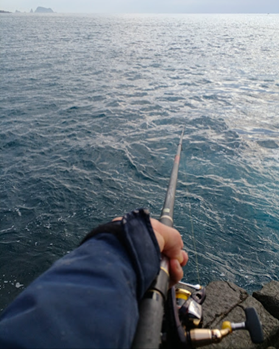 Mさんは、御年30台後半ですが、釣り歴が長く、小学校の頃から磯に立っていたそうですので、非常に竿の扱い等がさまになっていました。
